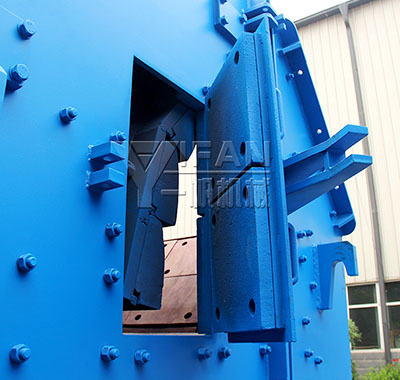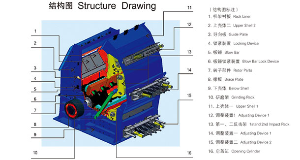 HC系列反擊式破碎機利用沖擊能破碎物料,工作時,在電動機的帶動下,反擊破碎機的轉(zhuǎn)子高速旋轉(zhuǎn),物料進(jìn)入后,與轉(zhuǎn)子上的板錘撞擊破碎,然后又被反擊到襯板上再次破碎,最后從出料口排出。用戶可調(diào)整反擊架和轉(zhuǎn)子架之間的間隙可達(dá)到改變物料出料粒度和物料形狀的目的。