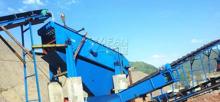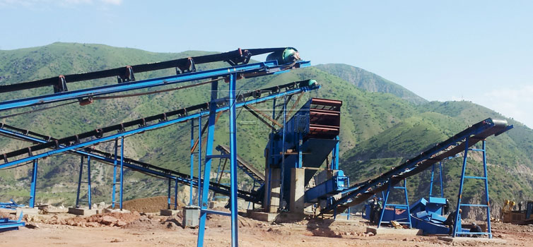 根據(jù)以上特性,一帆機(jī)械在配置河卵石破碎篩分生產(chǎn)線中,首先排除了易損件磨損較為嚴(yán)重的錘式破碎機(jī)、反擊式破碎機(jī)等設(shè)備。塔吉克斯坦現(xiàn)場(chǎng)是采用ZSW490X1100振動(dòng)給料機(jī) ,PE750X1060 鄂破,PSGB1300和PSGD900 圓錐破和3YK2160 圓振動(dòng)篩配置而成的一條時(shí)產(chǎn)150 - 180噸的河卵石破碎篩分生產(chǎn)線。