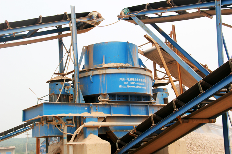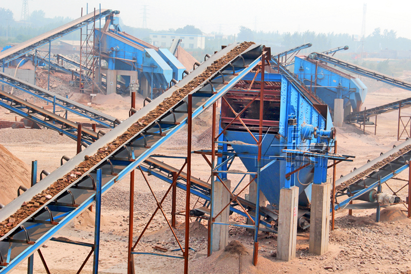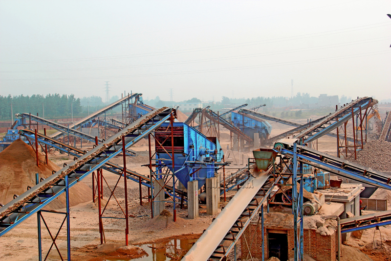 第二條是由振動給料機-顎式破碎機-圓錐式破碎機-直線振動篩-制砂機-圓振動篩-洗砂機組成的一條生產(chǎn)線。