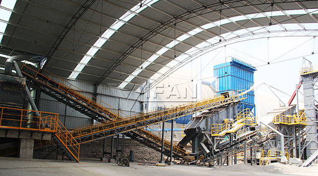 該生產(chǎn)線是鄭州一帆根據(jù)當(dāng)?shù)乜蛻羯a(chǎn)需求,自主研發(fā)設(shè)計(jì)的包含前段破碎到后段制砂的精品機(jī)制砂生產(chǎn)線(砂石同出),在一個(gè)生產(chǎn)線系統(tǒng)中加工生產(chǎn)出骨料和機(jī)制砂兩種成品。其優(yōu)勢(shì)在于,大大提高石灰石物料的利用率,降低整條生產(chǎn)線的廢料量,有效利用生產(chǎn)線廢料來提高產(chǎn)值,整個(gè)砂石同出系統(tǒng),符合國(guó)家對(duì)質(zhì)量、節(jié)能及環(huán)保的要求,實(shí)現(xiàn)了真正意義的綠色生產(chǎn)。